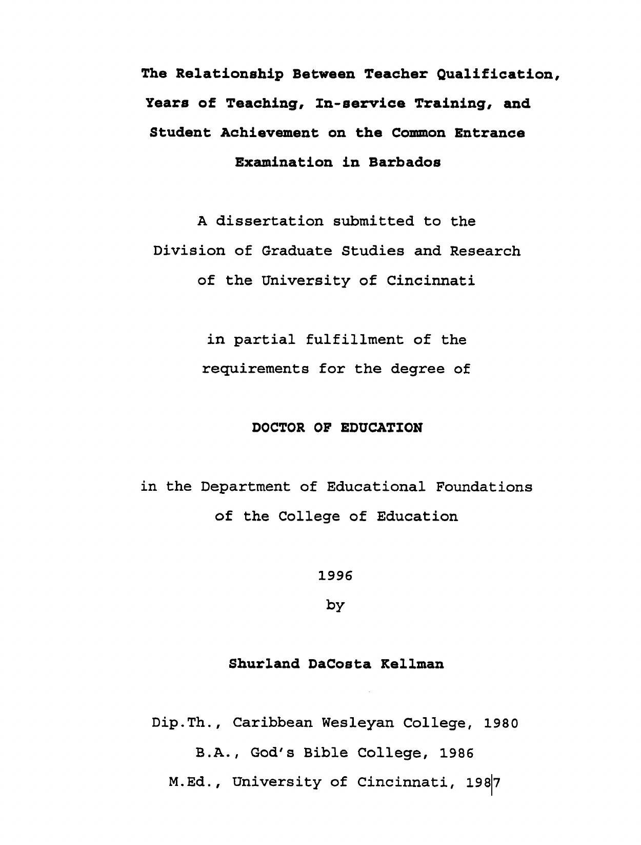 The Relationship Between Teacher Qualification, Years of Teaching, In-service Training, and Student Achievement on the Common Entrance Examination in Barbados