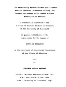 The Relationship Between Teacher Qualification, Years of Teaching, In-service Training, and Student Achievement on the Common Entrance Examination in Barbados